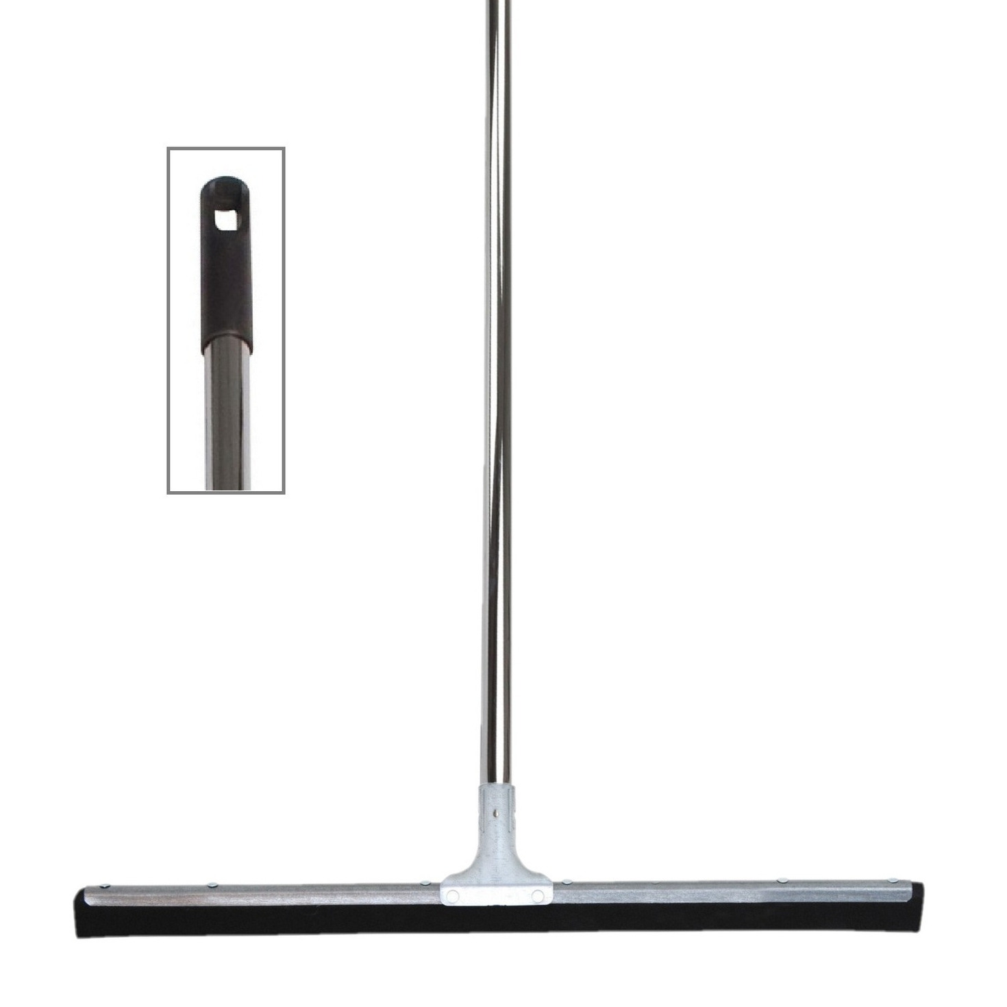*Vloertrekker / douchetrekker voor water, gemaakt van metaal en natuurrubber met een breedte van 60 cm*, met een kunststof steel in het zilver van 130 cm met klemuiteinde. Deze vloertrekker is geschikt voor het droog maken/trekken van tegels/vloer na het schrobben/schoonmaken, of om teveel water weg te vegen. De trekker bestaat uit een gegalvaniseerd metalen frame met daarin natuurrubber. Breedte van de kop: 60 cm. Vloertrekker / douchetrekker / waterbezem. , Dit artikel bestaat uit:, 1x Universeel bruikbare Bezemsteel – dweil steel – schroefdraad – verchroomd – 130 cm – ophang oog, 1x Vloertrekker/douchetrekker voor water – metaal/natuurrubber – breedte 60 cm